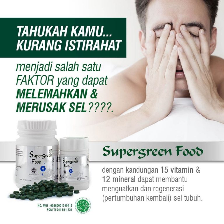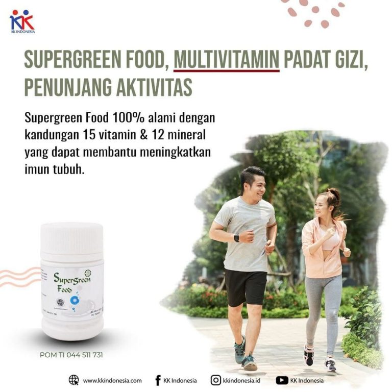 Untuk mendukung aktivitas agar kamu tetap semangat. Selain pola makan yang teratur, kamu bisa konsumsi Supergreen Food, mulitivitamin padat gizi yang 100% alami dengan kandungan 15 vitamin & 12 mineral yang juga dapat meningkatkan imun tubh.
